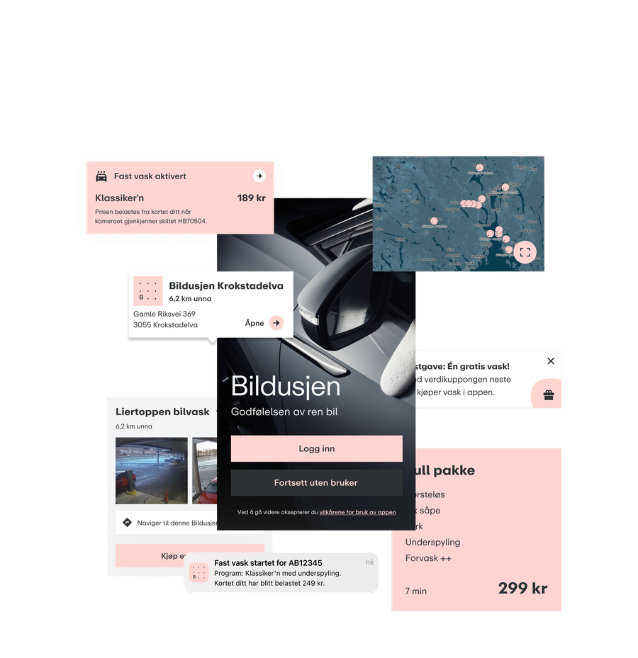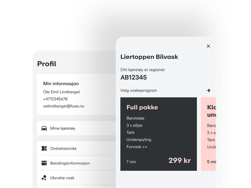 Kundereisen krever at vaskehall, maskin, kameraer, porter, betaling og kjernesystemer fungerer som én løsning. Fuse-plattformen styrer samspillet og sørger for at riktige handlinger trigges til rett tid. Resultatet er en fleksibel plattform der vi kan skreddersy en så smidig brukeropplevelse som mulig.