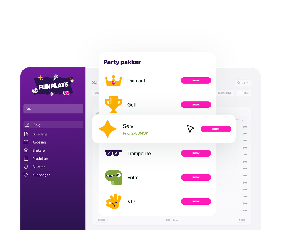 I tillegg til billettkjøp i app har vi laget bookingløsning på web. Der kan du velge ønsket tema-rom, meny og tilvalg, så sørger Funplays Heroes for en dag med lek og moro.