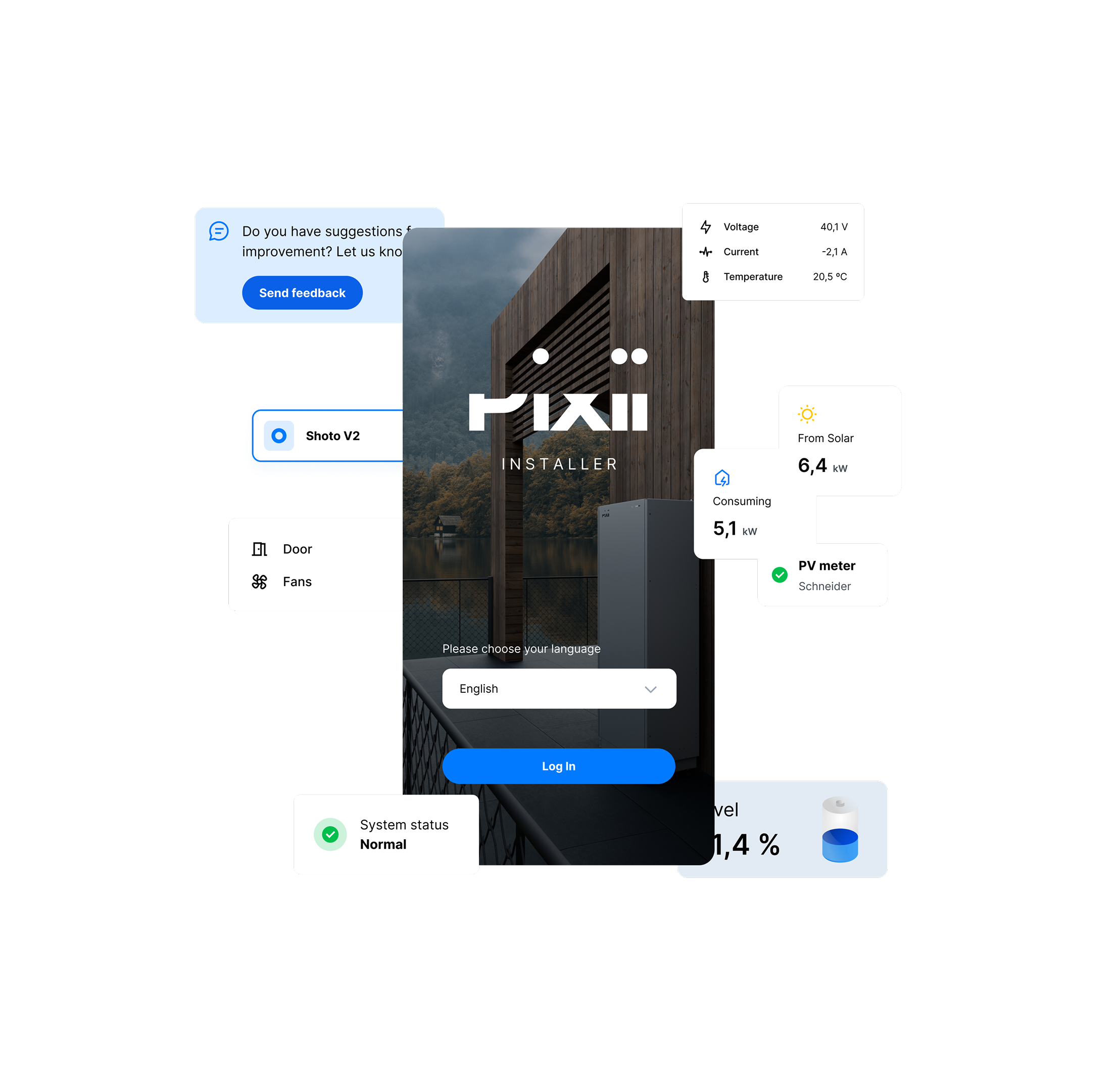 Etter lanseringen av Pixii Home™ møtte Pixii på en utfordring. Installasjon- og konfigurasjonsprosessen var ikke strømlinjeformet nok til å levere i de nødvendige volumene. Opplæring og gjennomføring ble for tidkrevende, så et nytt konfigurasjonsgrensesnitt for installatører var nødvendig.